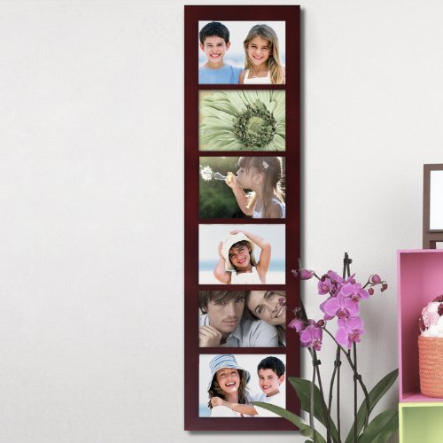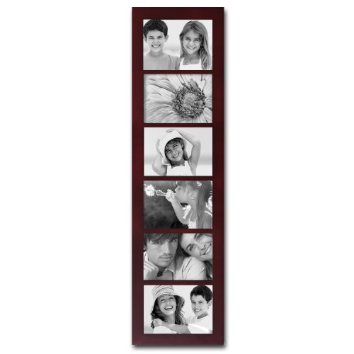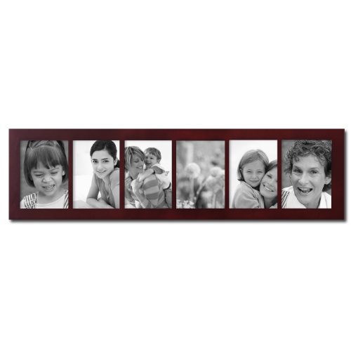 - 6 Openings, 5x7". Walnut color finish, Vertical and horizontal hanging options