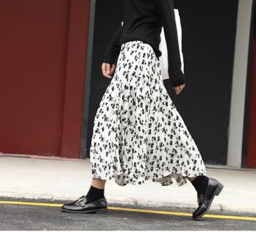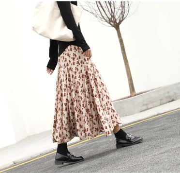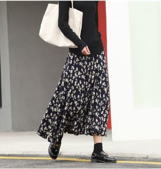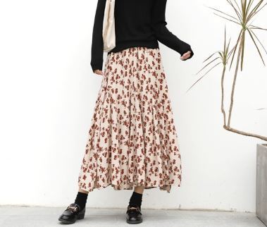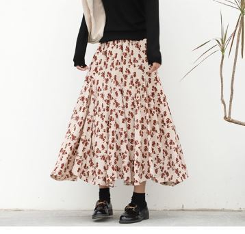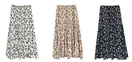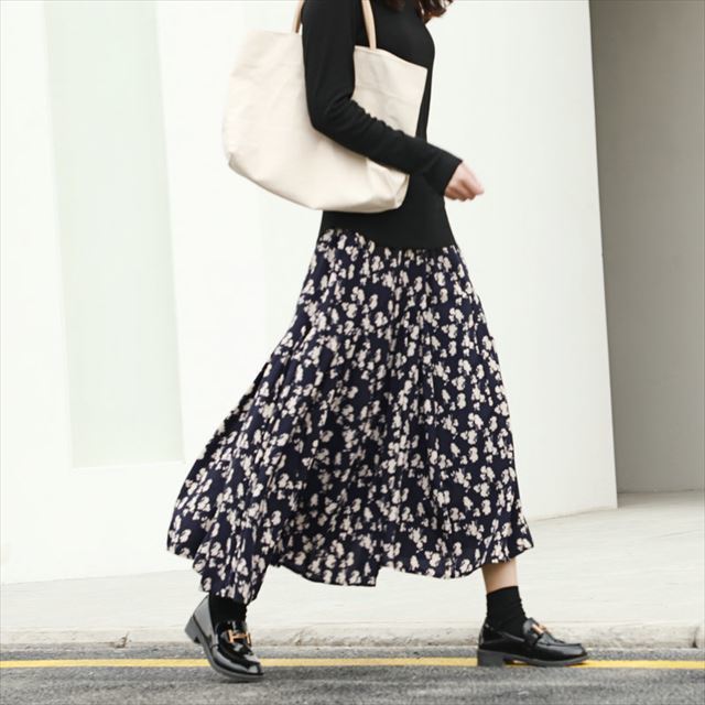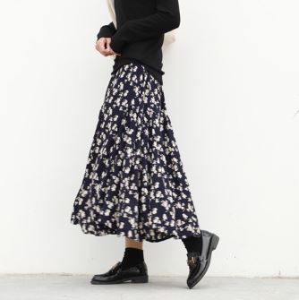 ふわりとひろがるシルエットが女性らしい、小花柄のロングスカートのご紹介です。