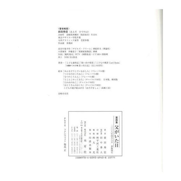 【商品基本情報】 商品名称:童画集 父がいた日 著者/出版社:前田 秀信/前田 秀信 初版発行日:2008/04/08 サイズ:A4変判 ページ数:105 ISBN/JAN:9784839369408/4528189127333
