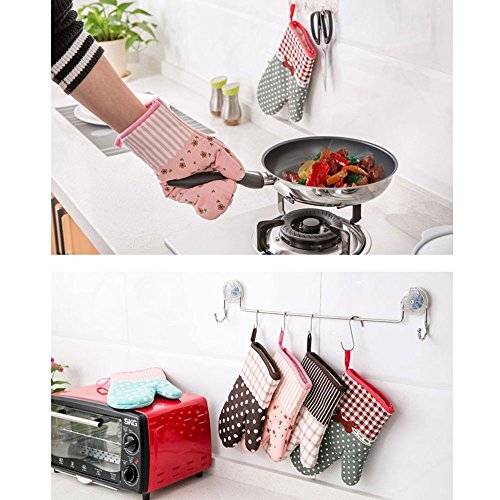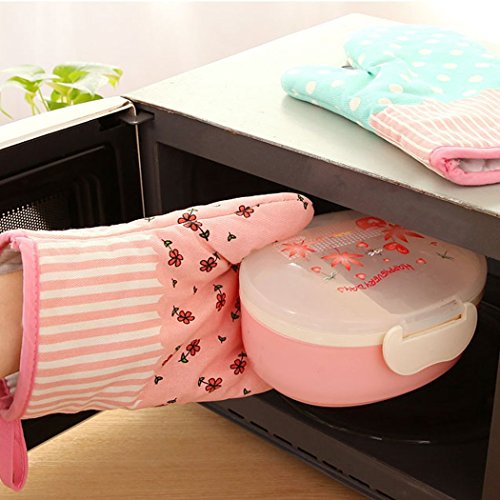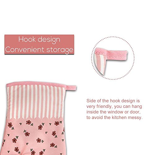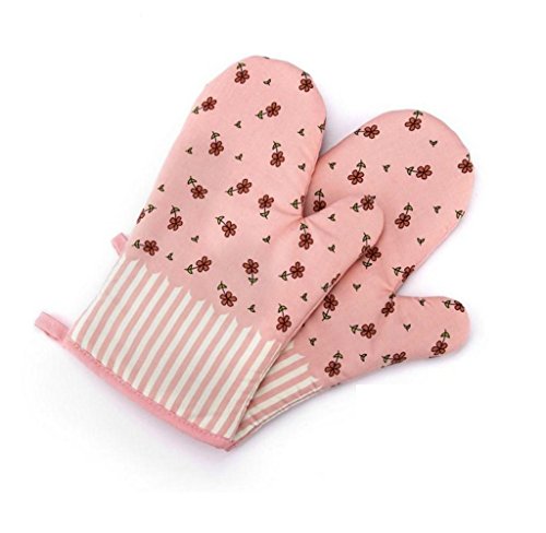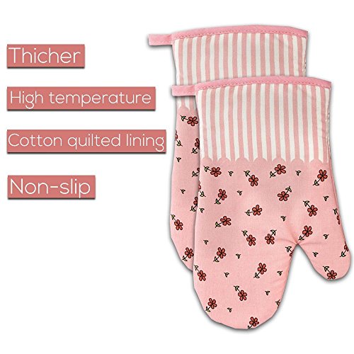 Microwave BBQ Oven Cotton Baking Pot Mitts Cooking Heat Resistant Kitchen,100% Quilted Cotton with Thick Terry Cloth Lining, Set of 2 Mittens (Pink)