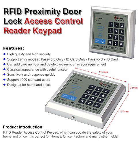 -. Binding : Electronics -. Brand : ZOTER -. EAN : 0700814938673 -. Feature : Support 1000 standard users / Entry modes : Password Only / ID Card Only / Password + ID Card / High quality and high security / Sensitively and response quickly / Add card number and delete card number as your requirement -. Label : Able Sky -. Manufacturer : Able Sky -. Model : ACR1K -. MPN : ACR1K -. PackageQuantity : 1 -. PartNumber : ACR1K -. ProductGroup : Photography -. ProductTypeName : SURVEILANCE_SYSTEMS -. Publisher : Able Sky -. Studio : Able Sky -. Title : Access Control Keypad, ZOTER RFID Proximity ID Card Reader 125KHz for Electric Door Lock -. UPC : 700814938673