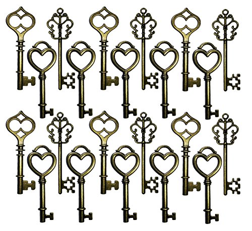 Salome Idea 30PCS Assorted Antique Skeleton Keys, Vintage Steampunk Keys, Juliet Collection (Bronze)