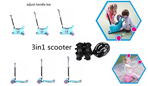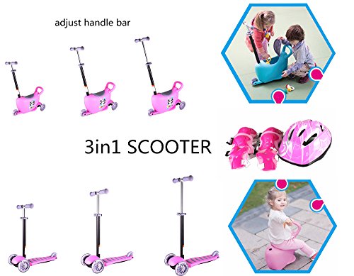 X-Free 3-in-1 Deluxe Kids Adjustable Height Scooter with Light Up Wheels
