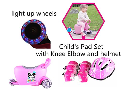 Xtreme Free 3-in-1 Scooter with Light Up Wheels, Adjustable Handle, Knee Elbow and Helmet for Kids, Pink