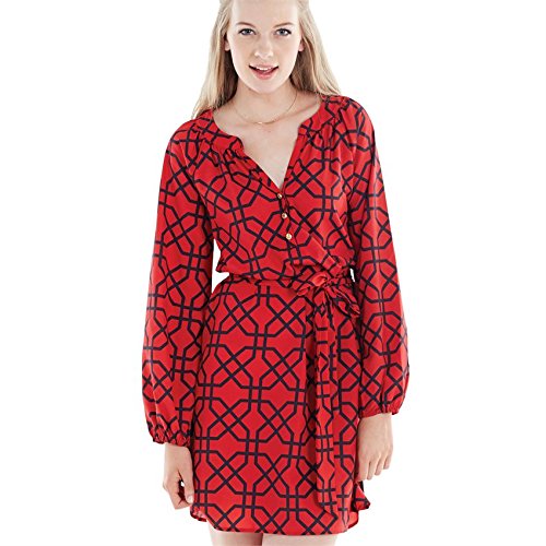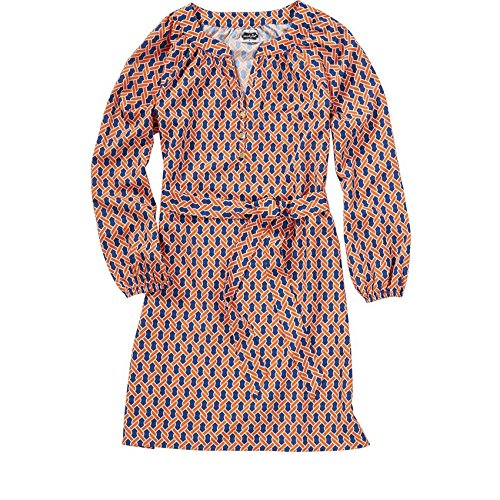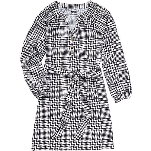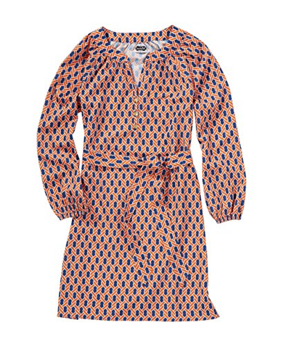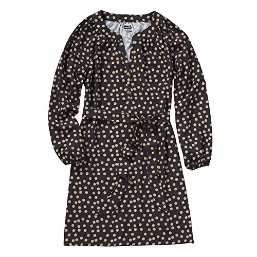 Poly crepe shirtdress has removable waist tie and three gold Mud Pie logo buttons at placket. Elastic sleeve cuff allows for adjustable length. Measures approximately 36 1/2" from shoulder to hem on size small.Feature