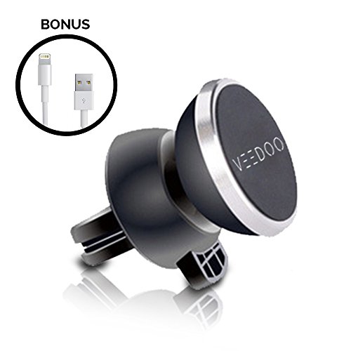 -. Title : VeeDoo Universal Air Vent Magnetic Car Mount, 360 Rotation Cell Phone Car Holder for iPhone Samsung Fits All Smartphones and Small Tablets [Bonus: 3 Feet Lightning Cable]