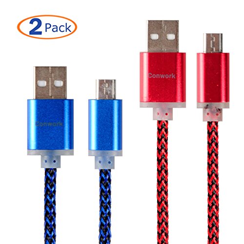 Micro USB Cable, USB 2.0 A Male to Micro B, Nylon Braided Cconwork [2-Pack] 3Ft Sync & Charging Cable Cord For Android Phones, Samsung, HTC,LG, Wacom Bamboo and more (Red/Blue)