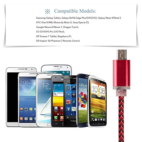 Micro USB 3 Feet Cables: Compatible with the most popular Android and Windows smartphone, tablet, and other devices such as the Samsung Galaxy Tablet, Galaxy S6/S7 Edge/S4/S3/S2, Galaxy Note 5 4, HTC One X/M8, Motorola Moto X, Sony Xperia Z3, LG G3/G4/G Pro 2/G Flex2, Google Nexus 6/Nexus 7, Dragon Touch, HP Stream 7 Tablet, Raspberry Pi£¬DJI Inspire 1& Phantom 3 Remote Control, Wacom Bamboo/Tablet and more
