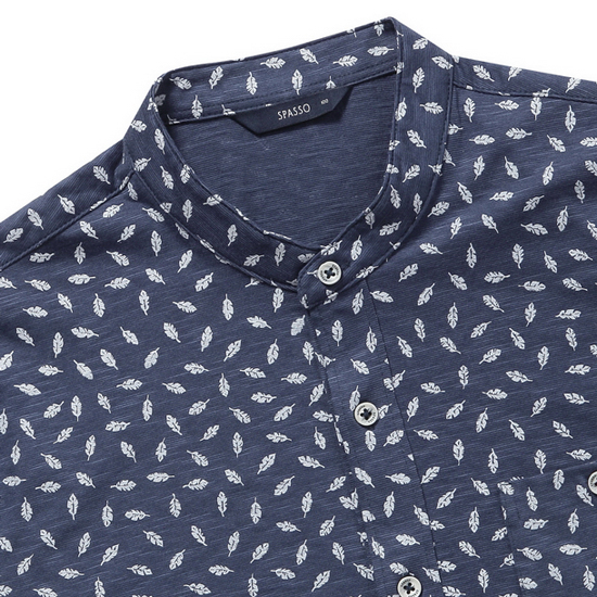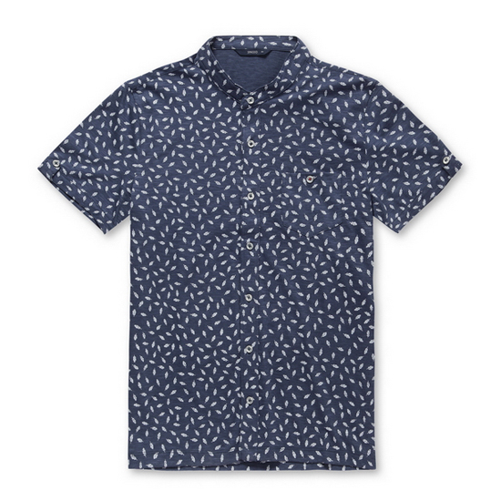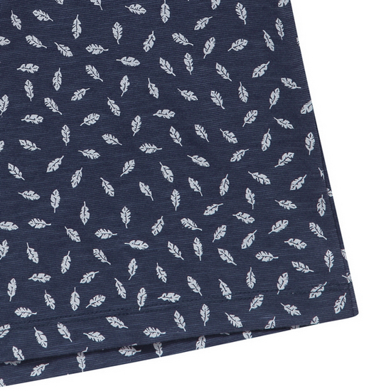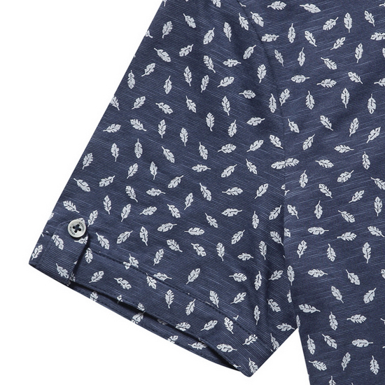 - 가로 잔조직에 올오버 네이쳐 프린트를 매치한 남성 티셔츠.