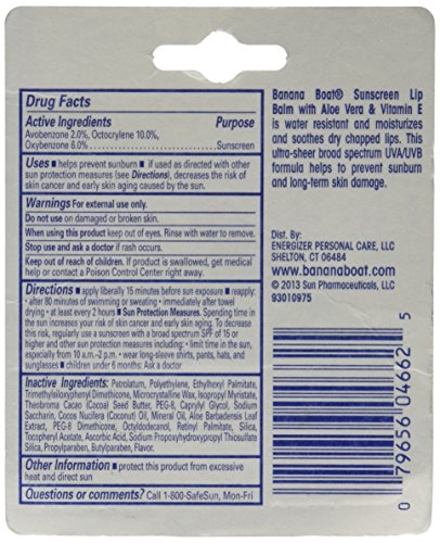 Banana Boat Aloe Vera with Vitamin E Sunscreen Lip Balm, SPF 45 .15 oz (4.25 g)