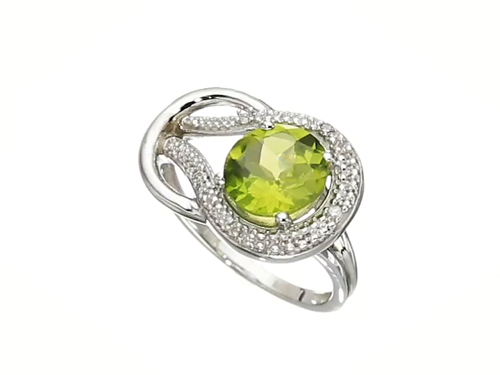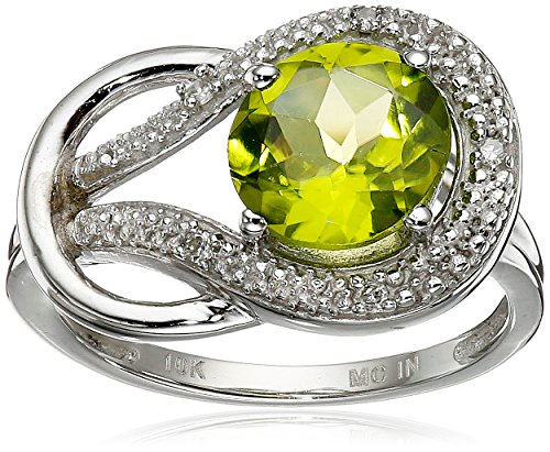 Peridot and Diamond Accent Love Knot Ring in 10k White Gold, Size 7
