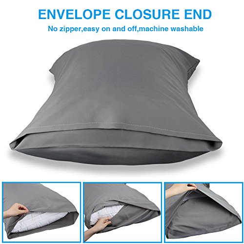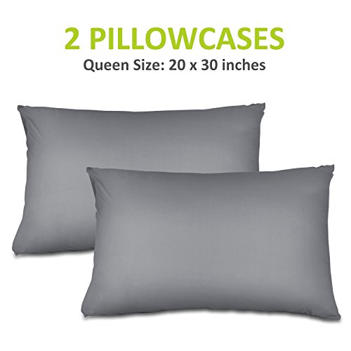 2 Pack Queen Size Microfiber Pillowcase, 100% Brushed Ultra Soft Bed Pillow Protector, Wrinkle Resistant / Hypoallergenic Bedding Pillow Cover set ( Gray )