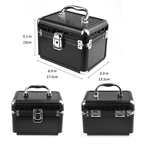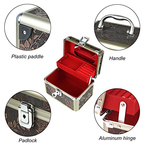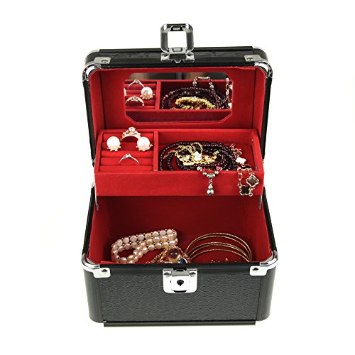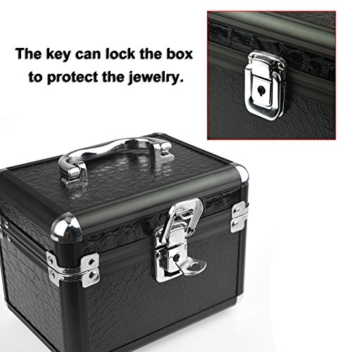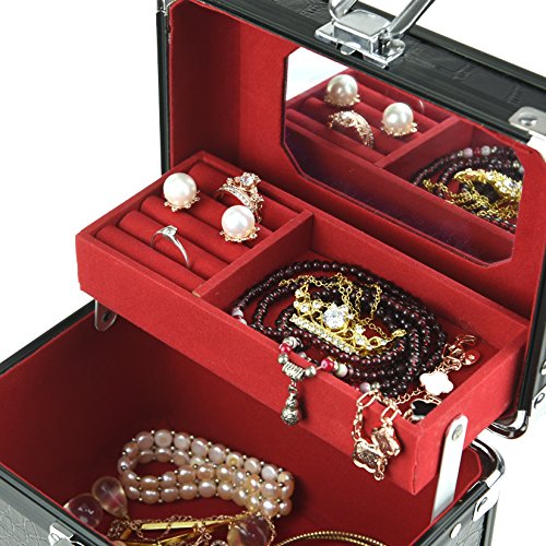-. Feature : Featured with antirust aluminum surface and soft velvet, attractive in appearance, protect your jewelry from dust and scratches. / Multi-functional jewelry case with storage drawers, classifies necklaces, bracelets, watches, earrings, ear studs, hairpins, brooches and other jewelries in perfect order. / Handle and mirror is provided, lock with key adds elegance and security. / The jewelry box is specially designed for journey, portable and space saving, the best gift to your girlfriend or wife. / Dimensions: 6.8 x 5 x 5.1 inches (L*W*H); Weight: 1.8 pounds.