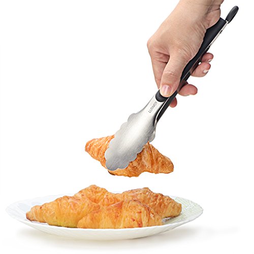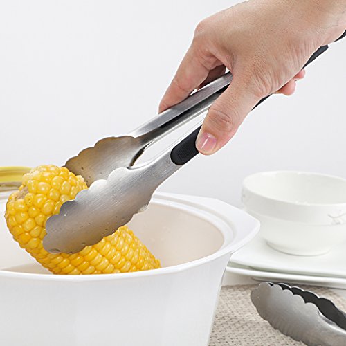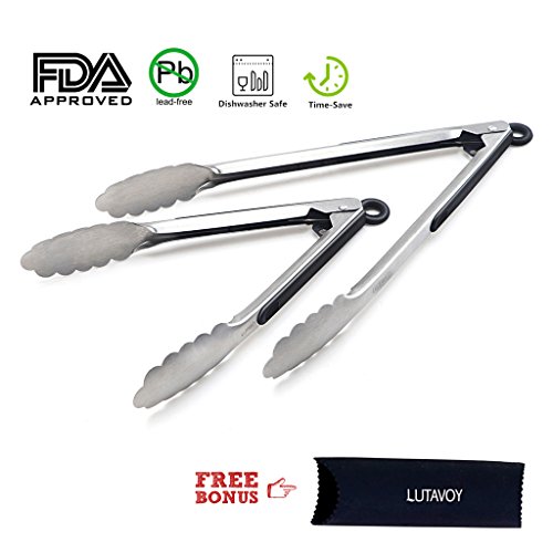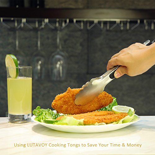 LUTAVOY Stainless Steel Silicone Kitchen BBQ Tongs Salad&Grill Serving Tongs 2 Packs 9"&12" (Stainless Steel)