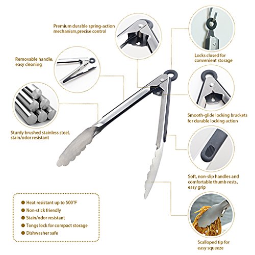 - 2 Set Tongs Combo – Fabrited from FDA Approved and leed-free stainless steel, KS01 allows you to easily handle all sorts of food. Pick up up to 20 lb. of food and heat resistant up to 500 degrees F. Necessity for every kitchen,party,bar,cafe,buffet, resaurants.