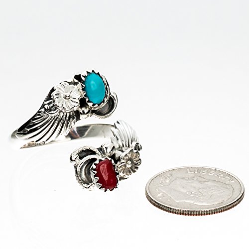 -. Binding : Jewelry -. Brand : Turquoise Skies -. Department : womens -. Feature : Blue turquoise and Red coral stones surrounded by silver leaves and flowers / Fully adjustable helix band will fit most sizes / Handmade in the USA by Navajo artist Etta Belin / Stamped sterling silver / Ring ships in a beautiful leather Medicine Pouch -. Label : Etta Belin -. Manufacturer : Etta Belin -. Model : TAR70701NAE -. MPN : TAR70701NAE -. PartNumber : TAR70701NAE -. ProductGroup : Jewelry -. ProductTypeName : FASHIONRING -. Publisher : Etta Belin -. Studio : Etta Belin -. Title : TSKIES Handmade Navajo Turquoise Coral Sterling Silver Adjustable Ring by Native American Artist