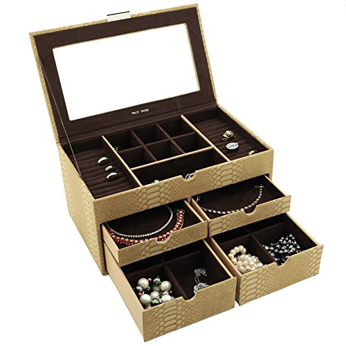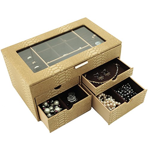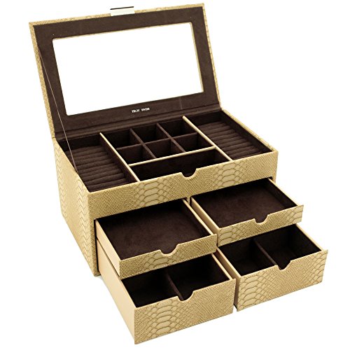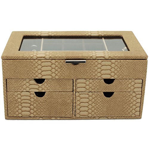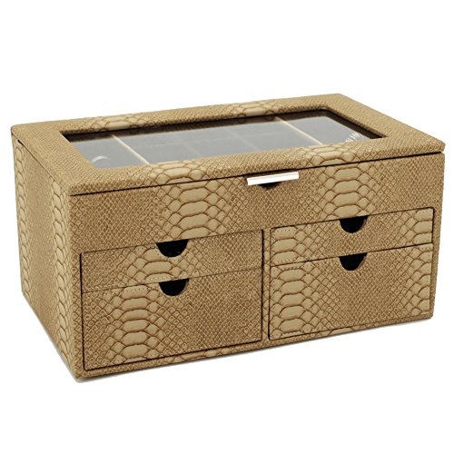 -. Binding : Watch -. Brand : Bucasi -. Department : Womens -. EAN : 0845923024111 -. Feature : Large Jewelry Box Keepsake Chest in Animal P.R.Int With Load Of Space to Organize all Jewelry / Jewelry box features Ring Trays, Separated Compartments, and Pull Out Drawers to Organize all your jewels / The Box Measures: 12" inches wide, 7.5" inches deep and 6" inches high. / The Exterior features a Classic Snake Embossed Pattern, while the interior is Made From a Mocha Brown Fabric / Well Designed and Attactive Case Makes a Great Gift for Women and Ladies of all Ages. Also Available in Tan and Brown Comination -. Label : Bucasi -. Manufacturer : Bucasi -. Model : TS6531SKE -. MPN : TS6531SKE -. PartNumber : TS6531SKE -. ProductGroup : Watch -. ProductTypeName : WATCH -. Publisher : Bucasi -. Studio : Bucasi -. Title : TS6531SKE Large Jewelry Box Keepsake Chest Organizer Storage Jewelry -. UPC : 845923024111