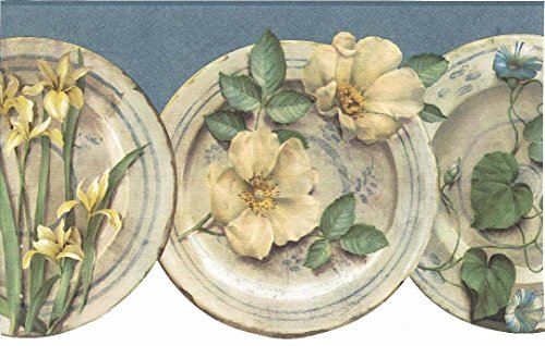 -. Title : Yellow Flower Plate Kitchen Wallpaper Border 4900 FR