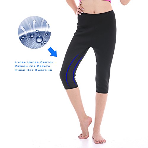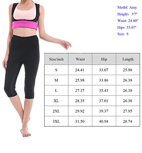-. Feature : BYE BYE FAT-2mm thickness neoprene sauna legging,heats up and burn the excess calories while workouts,unique material produce higher compression resulting in more sweating and help to sweat out harmful fats / DURABLE MATERIAL-High quality material: 5% Lycra, 70% neoprene, 25% polyester, very soft and comfortable to wear / BREATHABLE DESIGN-Lycra inside seam crotch makes you feel breath during workouts or exercise; high waist and 3/4 length helps to burn the fat, reduce the abdomen, and slim your leggs / MULTIWAY USES-Ideal for Jogging leggings, Running leggings, Gym leggings, Exercise leggings, Workout leggings / RIGHT SIZE-PLEASE REFER TO OUR SIZE CHART ON THE LEFT PICTURE before place the order, one of your own legging would be a great size reference