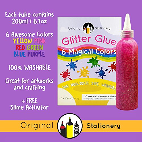 Each pack comes with 6 amazing colors - Red, Yellow, Green, Purple, Pink and Blue! Crammed full with glitter. Just remember to shake it to wake it. You will be amazed be the fab and fun things you and your kids will be able to create. Live a life full of color with Original Stationery glitter glue.