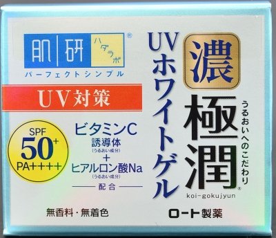 로트《세이야쿠》 로트제약기연(하다라보) 고쿠쥰 UV화이트 겔 90g SPF50+/PA++++ 올인원 겔 무향료 무착색 광물유 프리×42점 세트 (4987241135226)