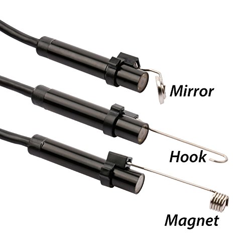 Specification: Sensor: 1/5 CMOS image sensor Color: 24 Bits Color Resolution: 1280 x 720, 640x480,2 Megapixels View angle: 62 degree Diameter: 8.5mm LED Qty: 6 Waterproof: IP67 Frequency: 2.425GHz-2.493GHz Transmission distance:0 to 30m Frame rate: 30F/S System: Android 2.3, IOS 6.0 and Above Built-in 6 LED light Operating Temperature :0 degree to 40degree Interface: Micro-USB IOS/Android System: iPhone 7 6s 6 5s 5c 5, iPad mini 234, Samsung Galaxy S7 S6 S5 S4, Windows 7/8/10/XP/VISTA Note: (Not Support No WIFI function device) Photo Format: JPEG Vedio Format: AVI Package included *1 x Wifi transmitter *1 x USB Inspection Camera *1 x English Manual *1 x Telescoping Handle *1 x Holder *1 x Mirror *1 x Hook *1 x SuckerFeature