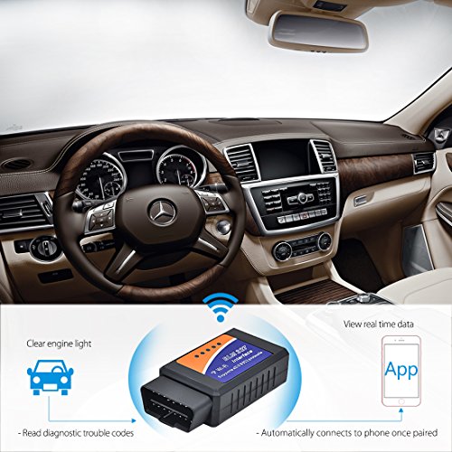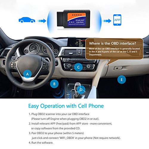- Easy Connect Via WIFI: Unlike other Bluetooth OBD scanners, this efficient car code reader OBD can connect to any device including IOS (iPhone, iPad, iTouch, Mac), Android and Windows smartphones or computer via Wi-Fi connection and you can diagnose any car problem and unlock massive amounts of data on your car’s performance in real time
