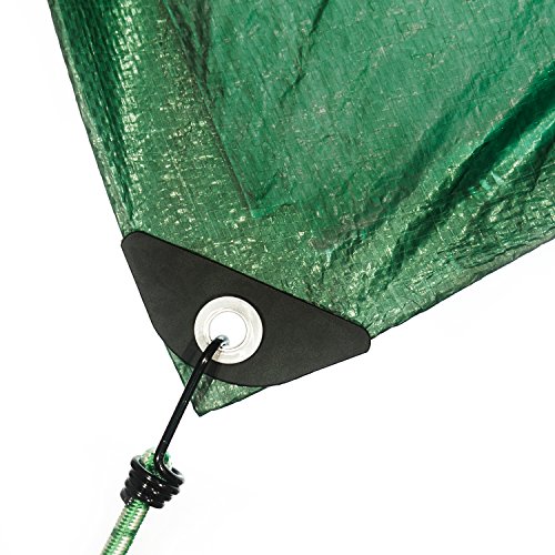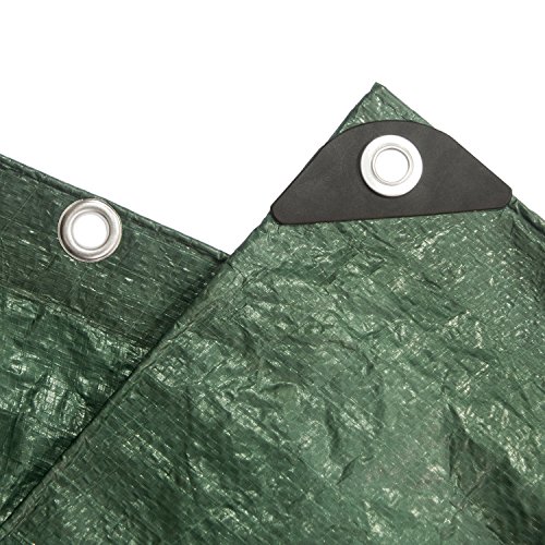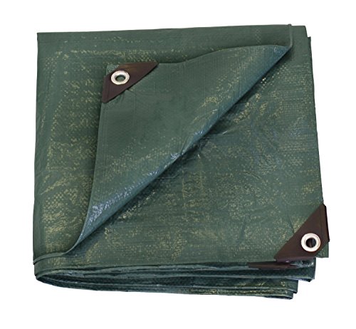 The stansport reinforced multi-purpose tarp is made of durable rip-stop polyethylene laminated on both sides. It features heavy duty rust resistant grommets every 3 to 4-feet and rope reinforced edges. This tarp is waterproof, washable and shrink proof. Color, forest green. SIZE 14 x 16-feet.