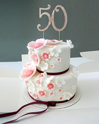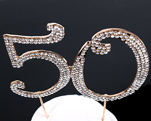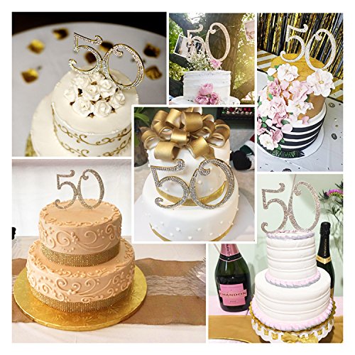 Scott Malone Rhinestone Cake Topper - Golden Anniversary or Birthday Number Cake Topper Party Crystal Rhinestone Decoration Gold 50