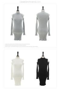 オープンショルダー ニットワンピース タイトワンピース 秋冬ワンピース セクシー リブニット ハイネック 大人可愛い