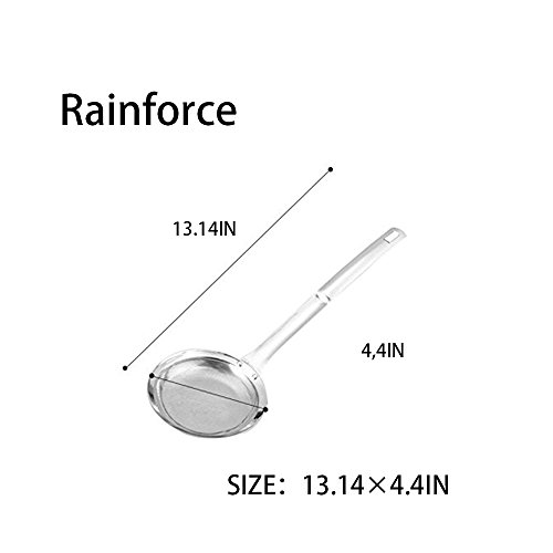 Studio : Rainforce Publisher : Rainforce Product Description Skimmer is an absolutely necessary tool for anyone who loves to cook and to eat healthly. ?Made from 304 high grade durable stainless steel with ergonomic handle,Durable and no rust, no breakage, no wear after multiple uses and washings. ?Fast,easy and complete separation of the floating fat from broths, soups and stews,it makes the clearest broth. ?Filter mesh is fine enough to pick up the smallest fat partides,remove thousands of calories from your food in seconds. ?Multi-functional:Filter soy milk and food scum.remove grease and foam from hot pot ?EASY TO CLEAN : Dishwasher safe; Hand Wash : simply wash with warm water and soap to reuse. 0