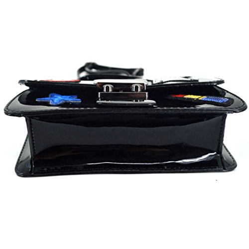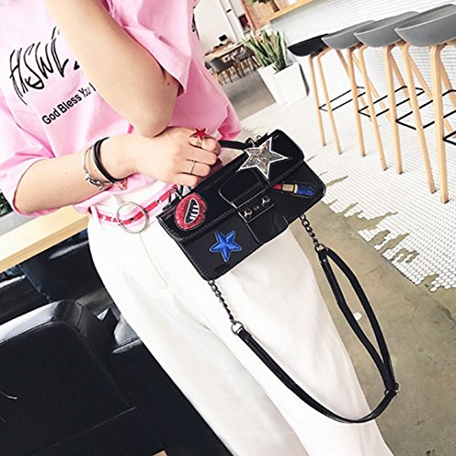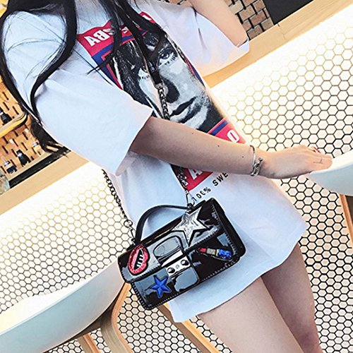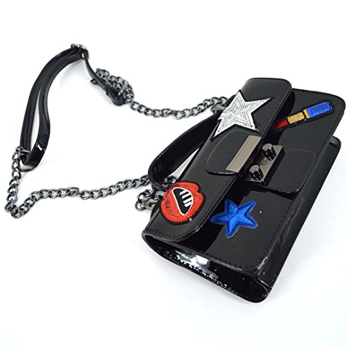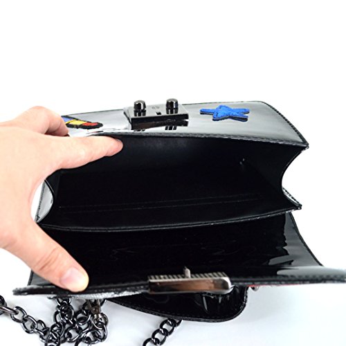 -. Title : ZLMBAGUS Women Fashion Patch Sticker Clutch Purse Bag Tote Handbag PU Chain Crossbody Shoulder Bag