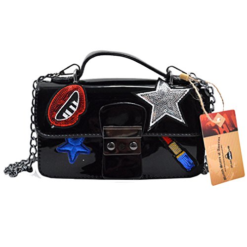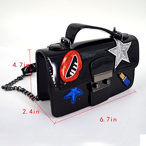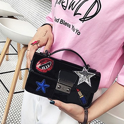 -. Feature : Bag Dimension (L*W*H): 17*6*12cm/6.7*2.4*4.7in, compact and smooth / Materials: thick PU leather + black polyester lining, stylish and durable / The mouth, sequin lip gloss and star shape patching stickers in the front of bag, chic and stylish, out of ordinary; solid color design, tasteful and fabulous color to fit your different fashion style / The compact handbag is lovely and portable, convenient to carry with; a perfect combination of simplicity and utility, orderly pocket design; simple lock closure, one main content bag is capable to hold your keys, cash, card, cell phone, makeup and many more / The PU handle and shoulder strap, detachable and very comfortale to wear; can be used as a tote handbag, a clutch purse, a shoulder bag or crossbody bag, one bag for many occasions; works perfect for dating, shopping, travelling, workplace; one beautiful and multipurpose handbag for girls and ladies