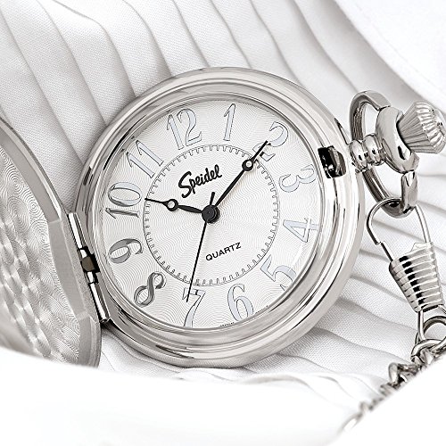 -. Title : Speidel Classic Smooth Pocket Watch with 14” Chain, Silver Tone with White Dial in Gift Box – Engravable