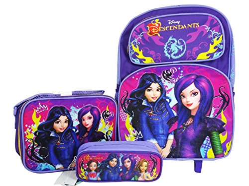 -. Brand : Disney -. Color : Multi -. Department : girls -. EAN : 0782069277769 -. Feature : Disney Descendants Rolling Backpack with lunch bag, pencil pouch combo set / Insulated Lunch Bag with Adjustable shoulder strap. Both have Double zippered main compartment. / Backpack has Two Front pockets with zipper closure, Adjustable shoulder straps, One side vecro-closure pocket, and one side meshed pocket. / Lunch Bag Dimensions approximately : 10"H x 8"W x 4"D / Back Pack Measures approximately : 16"H x 12"W x 5"D -. ProductGroup : Apparel -. ProductTypeName : LAGE -. Size : Large -. Title : Disney Descendants Rolling Backpack with lunch bag and pencil pouch combo set -. UPC : 782069277769