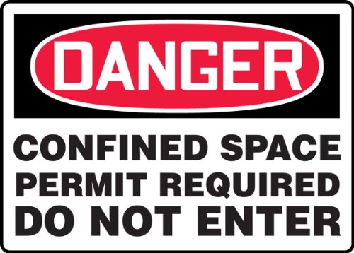 Accuform Signs MCSP122VS Adhesive Vinyl Safety Sign, Legend "DANGER CONFINED SPACE PERMIT REQUIRED DO NOT ENTER", 7" Length x 10" Width x 0.004" Thickness, Red/Black on White