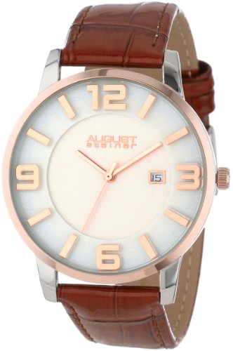 -. Binding : Watch -. Brand : August Steiner -. Color : brown -. Department : mens -. EAN : 0848572018845 -. Feature : White dial with rose-tone hands and hour markers / Ultra slim, silver-tone, case with a rose-tone bezel / Date displayed at the 3 o'clock position / Swiss quartz movement / Not water resistant -. IsAdultProduct : 0 -. Label : August Steiner -. Manufacturer : August Steiner -. Model : AS8055BR -. MPN : AS8055BR -. PackageQuantity : 1 -. PartNumber : AS8055BR -. ProductGroup : Watch -. ProductTypeName : WATCH -. Publisher : August Steiner -. ReleaseDate : 2013-07-01 -. Studio : August Steiner -. Title : August Steiner Men's AS8055BR Slim Swiss Quartz Leather Strap Watch -. UPC : 848572018845