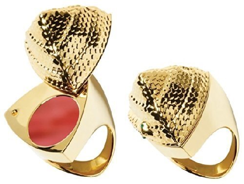 -. Feature : Smashbox Santigolden Age Be Legendary Snake Lip Stick Ring - (LIMITED-EDITION) / Shade: Still Kickin - (Golden Coral) / Condition: Brand New / BOXED / Ring Size: Ladies (8) / From Artist Santigold comes a Smashbox first -- a Collectible Snake Pyramid Ring with Swarovski Crystals and a Limited-Edition Shade of Be Legendary Lipstick hidden inside. Designed by Jules Kim, the ring is constructed of Zamak with Swarovski Crystals.