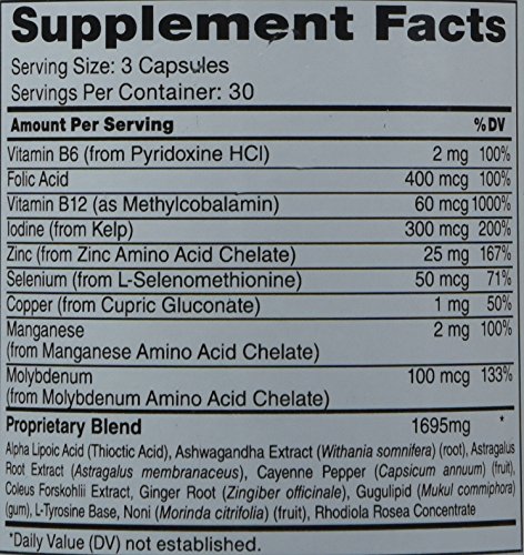 -. Feature : Thyroid support is a natural proP.R.Ietary blend that offers this important gland the essential nutrients it needs for peak performance.* / Keeping your hormones in check and letting them operate properly is crucial to feeling right, enough to make it a necessity to do what we can to ensure its optimal functionality / You can feel confident that your giving your body the nutritional support it needs for healthy thyroid function