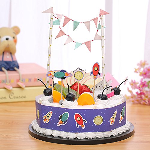 Gift Prod 2 Pcs Mini Happy Birthday Cake Bunting Banner Cake Topper Garland - Handmade Pennant Flags Mini Banner Decor Dino Theme Birthday Party Supplies Baby Boy Shower Decorations (Style 5)