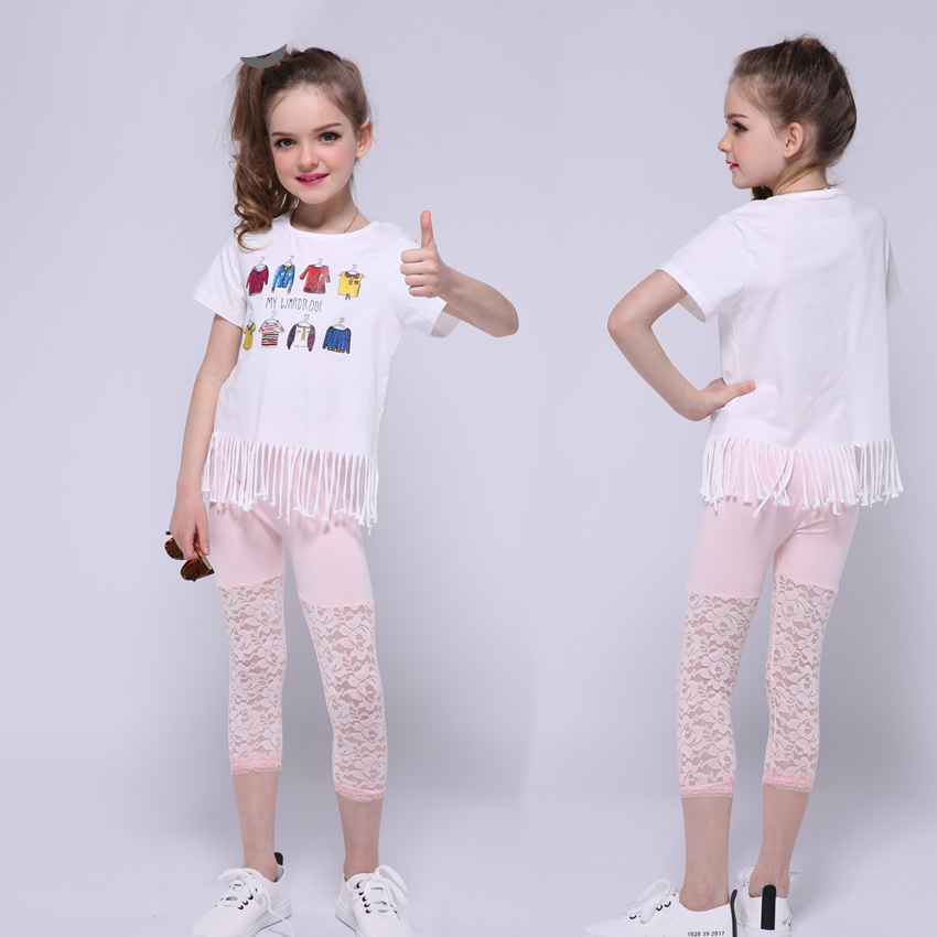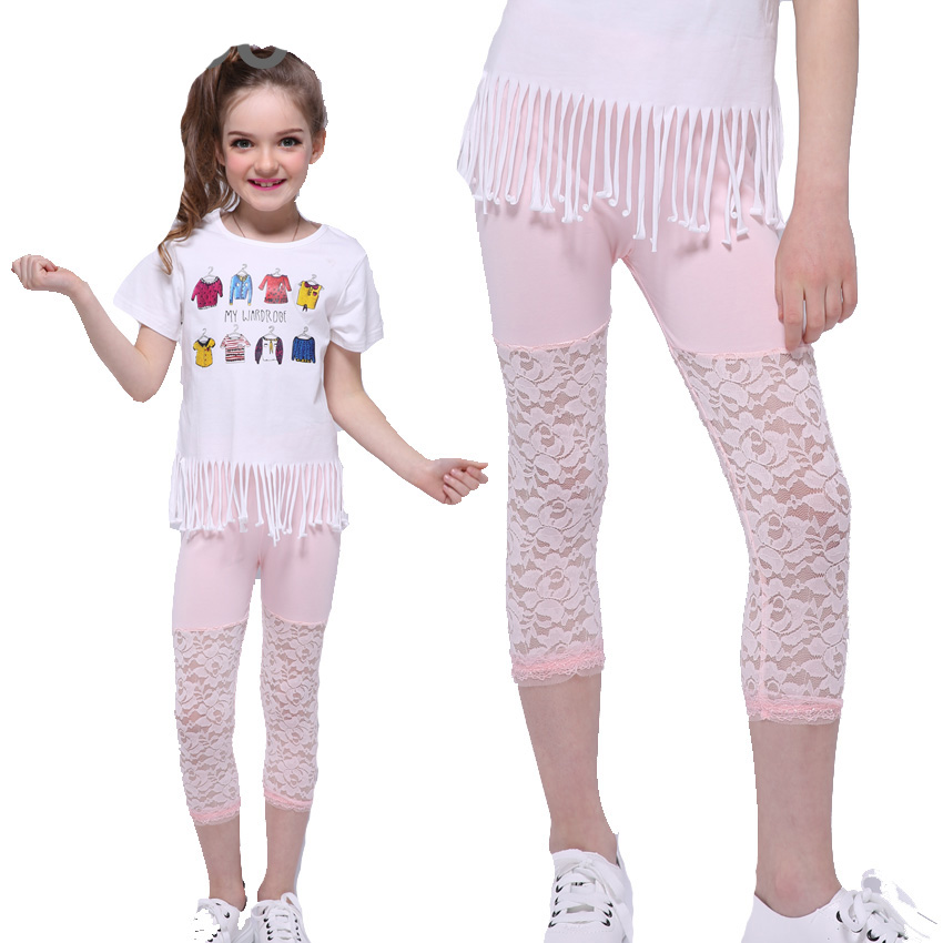 Kids Pants for Girls Cotton Leggings Casual Children Clothing Lace Trousers Summer Girls Calf Length Pants Big Size Baby Clothes
