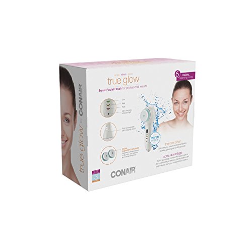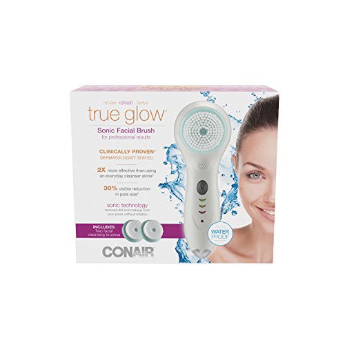 -. Binding : Health and Beauty -. Brand : Conair -. Color : Breast Cancer Awareness Pink -. Department : Female -. EAN : 0741082867968 -. Feature : The Conair Sonic Facial Brush is 2X more effective than using an everyday cleanser alone. Clinically proven and dermatologist tested to remove 98% of environmental toxins, 30% redness reduction, and 30% visible pore size reduction. / Sonic advantage: Brush head operates at 300 oscillations per second for professional facial cleansing action / Gentle enough to use as part of an everyday cleansing regimen keeping skin clear and preventing clogged pores and blackheads from developing / Automatic even cleanse timer tells you to move to another area of your face every 10 seconds; The unit beeps every 10 seconds of treatment to suggest a different quadrant of your face and shuts off after 1 minute of use with 2 beeps / Waterproof and safe for use in the shower; includes 2 facial brush heads and charging stand -. IsAdultProduct : 0 -. Label : Conair -. Manufacturer : Conair -. Model : SFB3 -. MPN : SFB -. NumberOfItems : 1 -. PackageQuantity : 1 -. PartNumber : SFB -. ProductGroup : Beauty -. ProductTypeName : BEAUTY -. PublicationDate : 2015-08-26 -. Publisher : Conair -. ReleaseDate : 2015-08-01 -. Size : NO SIZE -. Studio : Conair -. Title : True Glow by Conair Sonic Facial Brush; White -. UPC : 041114770403 -. Warranty : PENDING