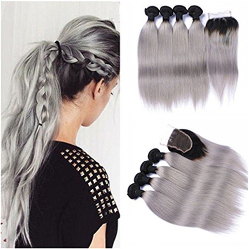 Studio : Tony beauty hair Publisher : Tony beauty hair Binding : Misc. Product Description Tony Beauty Hair Dark Rooted Silver Gray Ombre Brazilian Human Hair 4Bundles with Top Closure 5Pcs Lot.