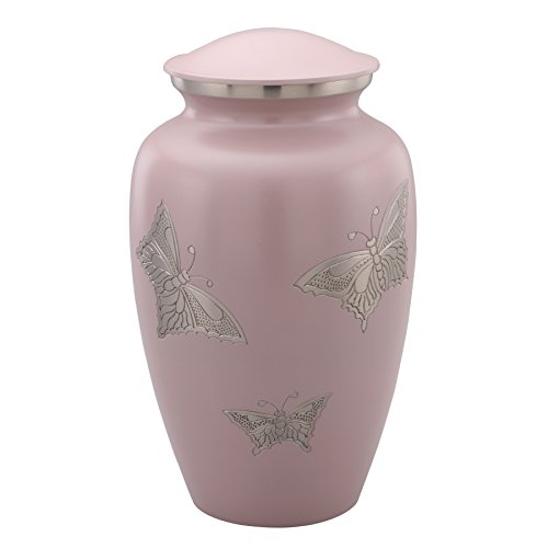 Memorials4u's Pink Butterfly is elegant and affordable BRASS CREMATION URN . The urn is made from solid BRASS and the perfect lacquer coat to preserve its brilliance. It comes with top opening with a threaded lid and felt bottom. The silver butterflies are uniquely engraved by hand for each urn to show beautiful detail giving the FUNERAL URN a unique look to each finished product. Our urns are handcrafted uniquely by an ancient process called sand casting. This ADULT URN holds up to 210 cubic inch of cremains and approximate measure is that 1-pound weight prior to cremation equals 1 cubic inch after cremation . Dimensions: 10-inch-high x 8-inch diameter. All of our urns are in our warehouse and ready to ship as soon as payment is cleared. Usually we ship within one business day of receipt of payment. 100% Satisfaction Guarantee #9830SATISFACTION→ We carry elegant and high quality products and we trust that you will be very happy with the quality and creative design of our products #9830BEST PRICE GUARANTEE #9830EASY RETURN→ If you do not like the product after arrival please contact us by contact form and report the issue within 3 days after product arrival and we will refund your money after product is shipped back to us. But, once product is used we will not accept return due to the personal nature of this product 0 |