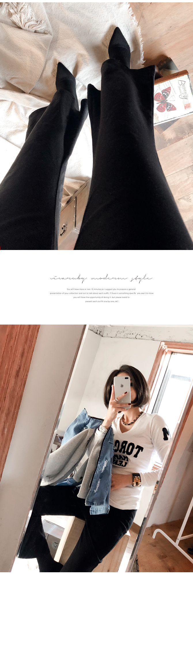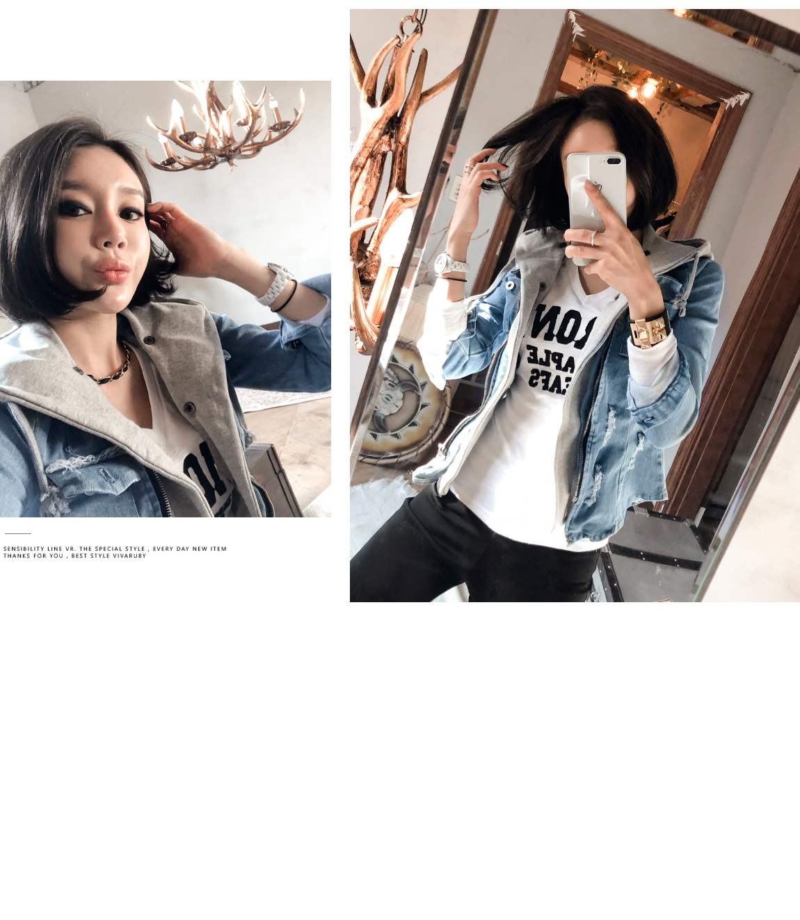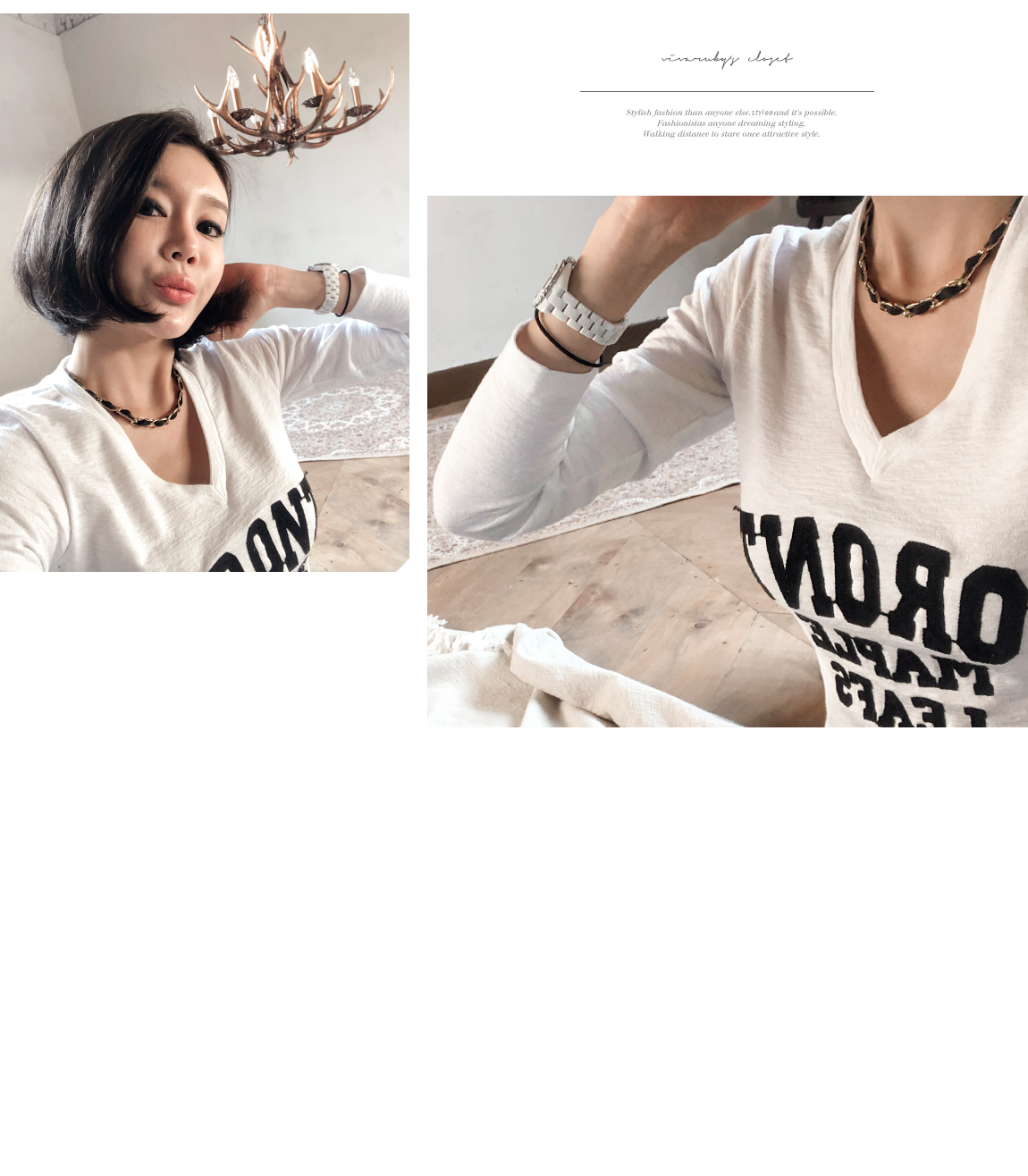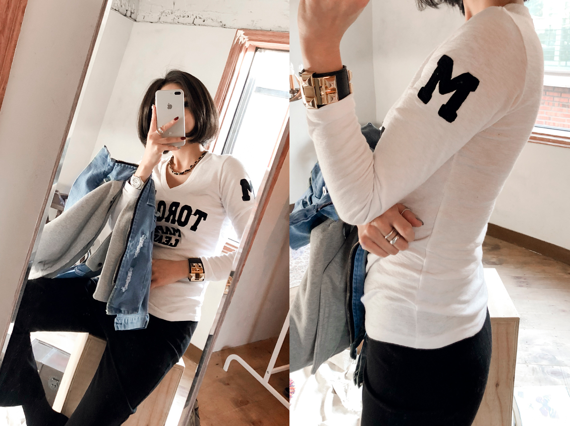 프론트에 배색의 레터링으로 포인트를 주었어요