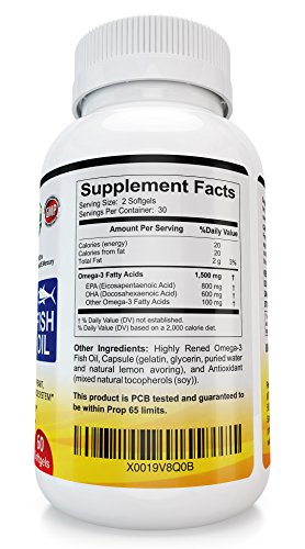 - 2,000mg of Fish Oil with 1400 mg Omega 3s (800 mg EPA, 600 mg DHA) Per Serving