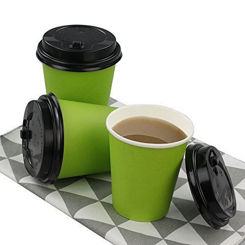 -. Feature : 50 green hot cups, 50 black lid. / Perfect for coffee, hot chocolate or any other hot or cold beverage / Perfect for home or commercial use