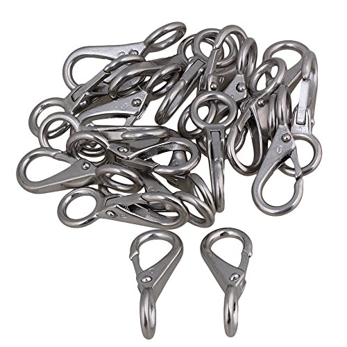 CNBTR 55mm Silver 304 Stainless Steel 0# Carabiner Secure Lock Boat Clip Hook Fixed Eye Hook Link Set of 20