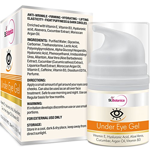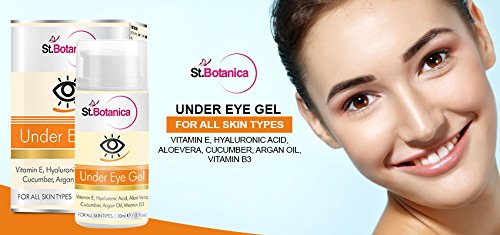 It is also Useful for the entire face. Can be applied all over the face for an enhanced glow and a more radiant looking face. When applying St.Botanica Under Eye Gel around your eye, notice how refreshing the gel is for all skin types yet effective with Hyaluronic acid to get incredible eye therapy results. Wrinkles lessen quickly, puffiness improves drastically, and dark circles lighten giving way to radiant, glowing, healthy eyes that pop.