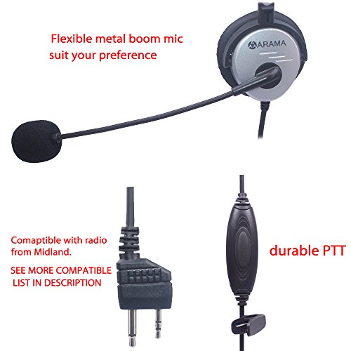 Arama PTT MIC Headphone Headset w/ Adjustable Band for Midland GMRS FRS Radios